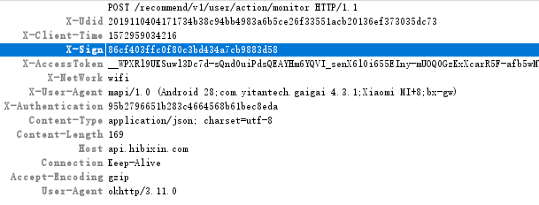 可以抓到包了(后记:这个案例的唯一价值可能在于抓包)。观察headers,直觉告诉我们,X-Sign、X-Authentication是加密参数。X-Udid是设备ID,X-AccessToken记录了用户登录状态。