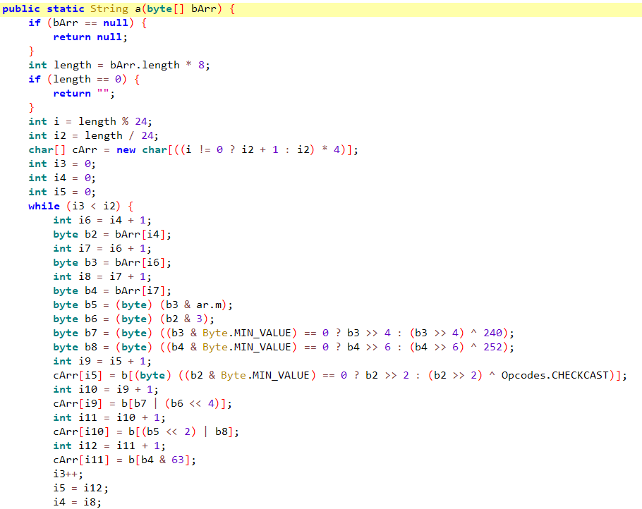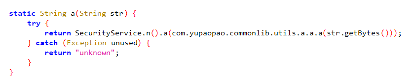 这里边首先取了待加密字符串的Bytes,随后调用com.yupaopao.commonlib.utils.a.a.a方法。点进去看一下这个方法。