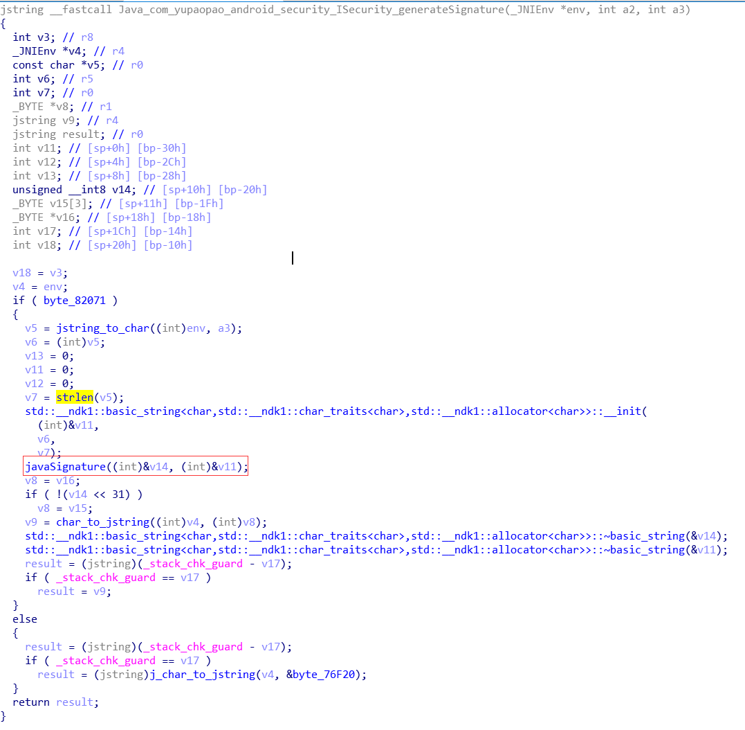 简单分析下,这个函数把传入的参数转换类型之后传给javaSignature函数,然后再转回jstring。那其实关键就在于这个javaSignature