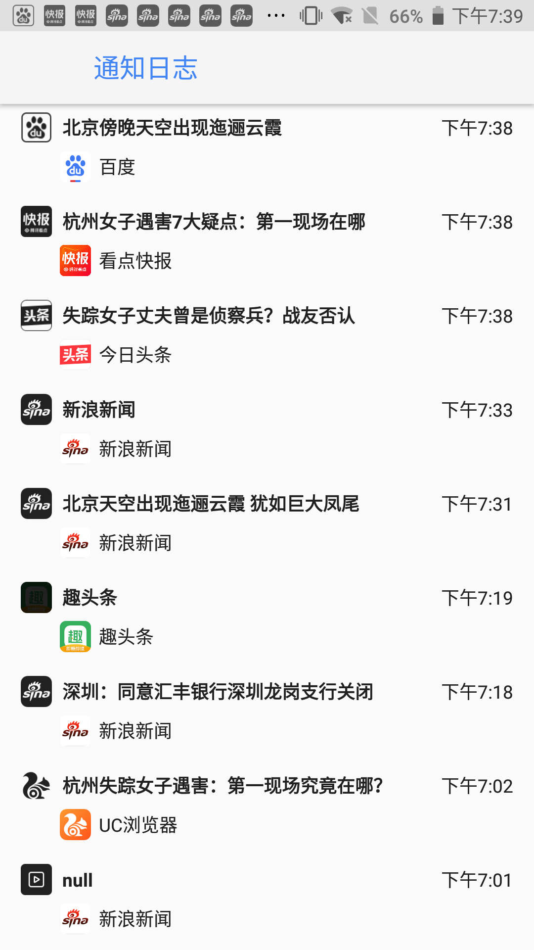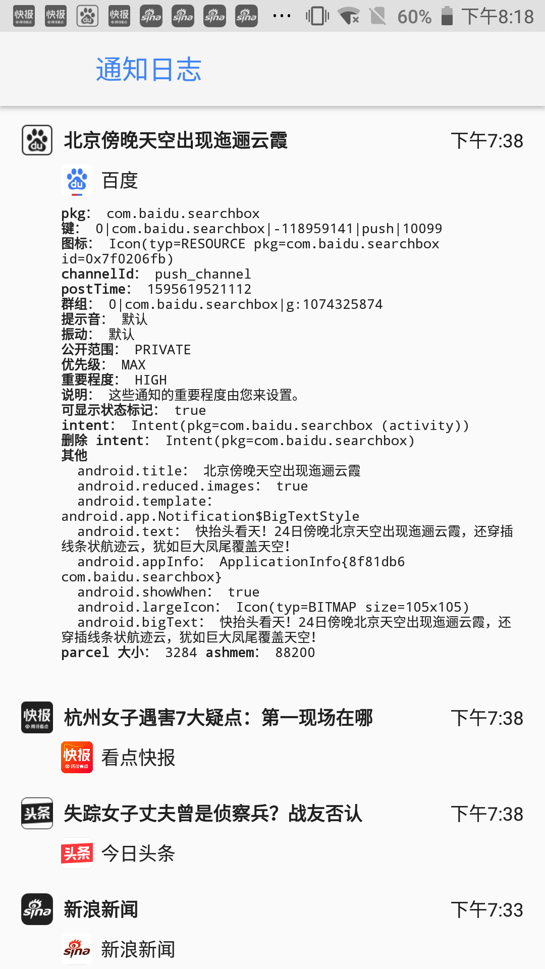 可以猜想的是这个通知日志微件中调用了系统级的API,获取到了所有活跃的、历史的通知。