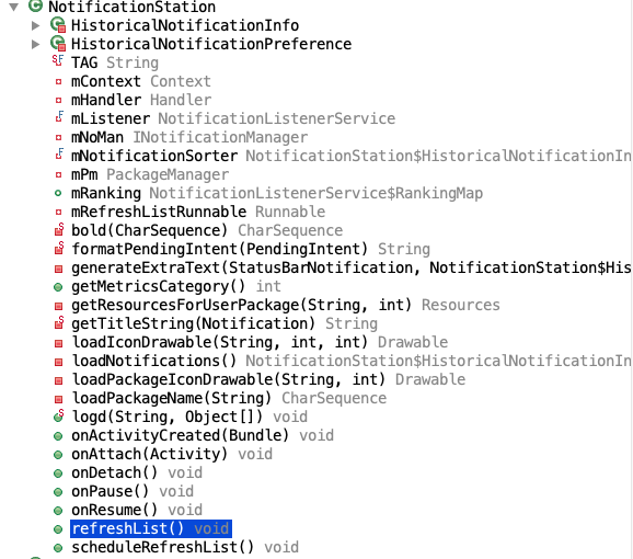var NotificationStation = Java.use("com.android.settings.notification.NotificationStation");